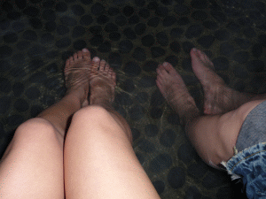 残念ながら足湯全体は暗かったのでうまくとれず、私と連れの足のアップになりました。