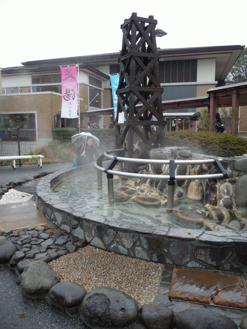 伊豆高原駅前の手足湯です。冬でも熱々!