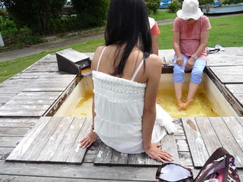 外には漁港に続く途中に足湯がありました。 とにかくまわりに何も無いのでとても開放感のある足湯です。 この日はちょうど着いた時に強い日差しになり暑いの何の(^^;)