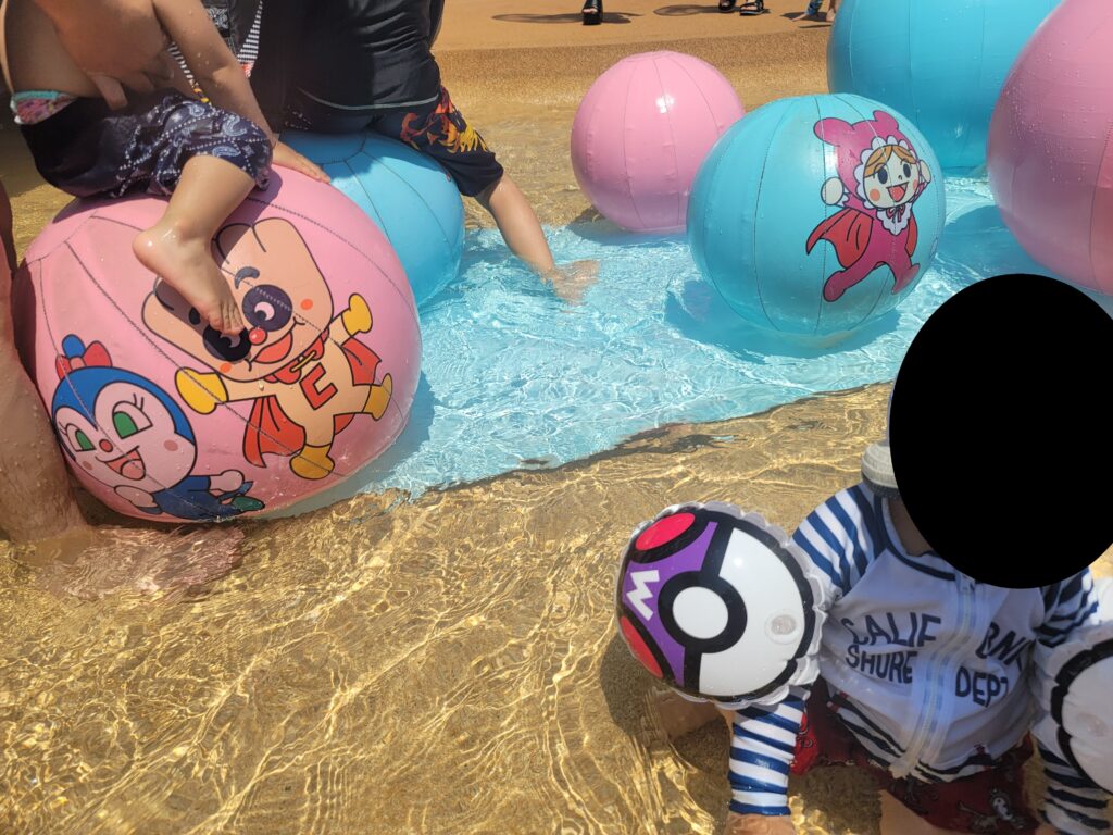 何よりも、子供の味方!アンパンマンプールは大好評で、水が怖くならないように見守ってくれています。