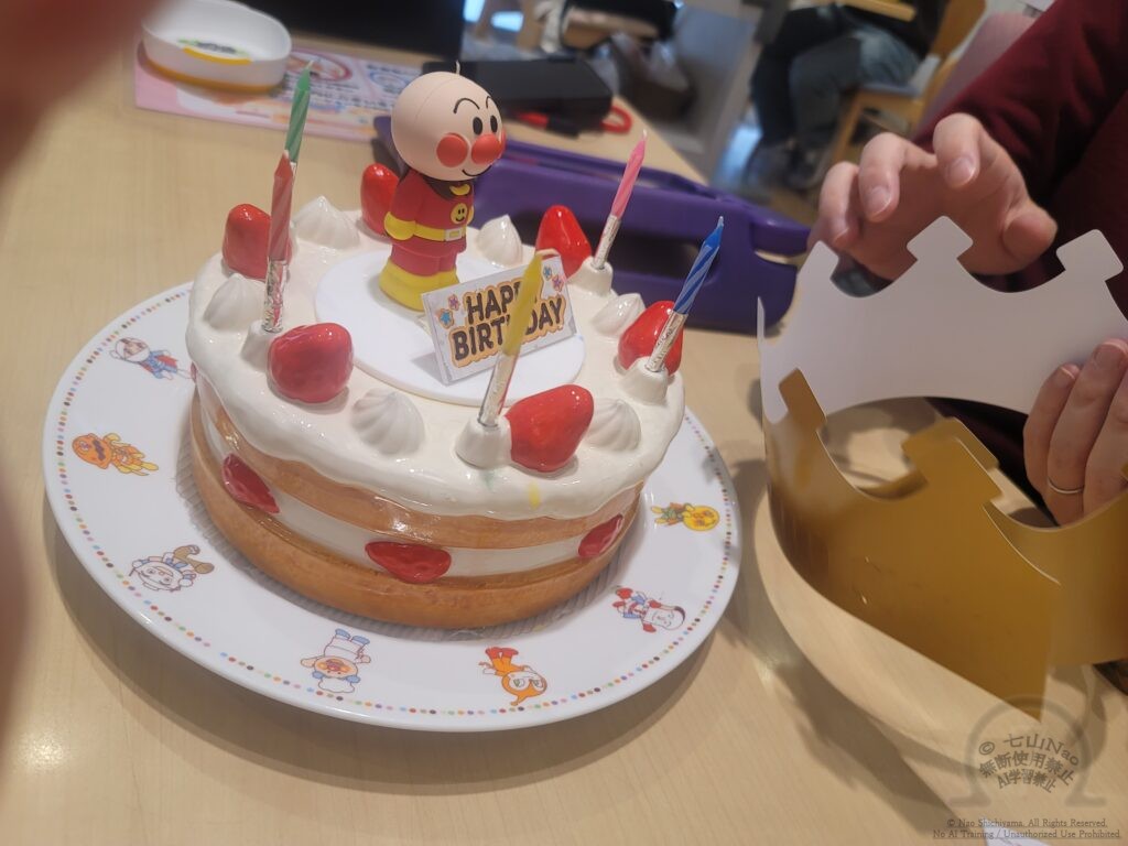 子供に大人気のアンパンマン、ケーキのところだけは忘れずに!でした。